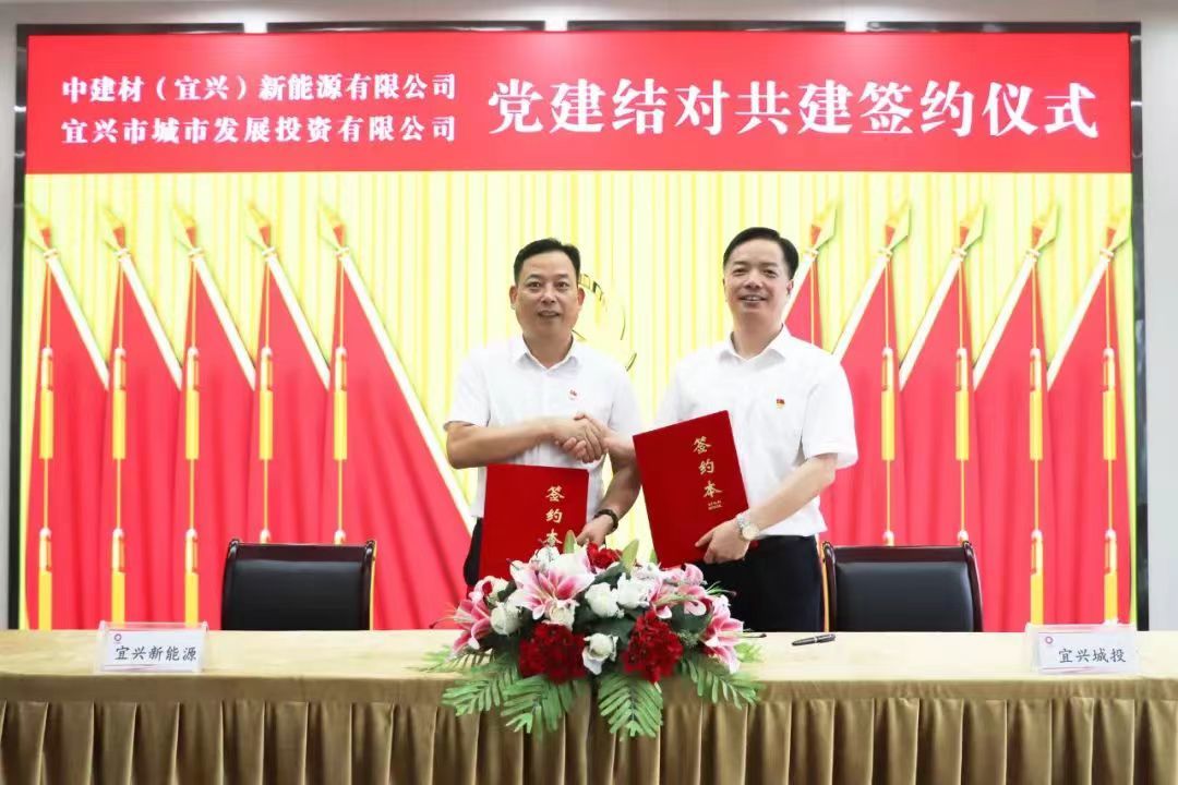 In order to further consolidate the foundation, strengthen the "muscles and bones", realize the advantages of others, complement each other, promote mutual construction, mutual benefit and win-win, give full play to the political core role of grass-roots party organizations, the role of fighting fortress and the exemplary and leading role of Communist Party members, unite and forge ahead, and jointly promote enterprises to move forward steadily on the road of high-quality development, September 1, the Party Branch of China Building Materials (Yixing) New Energy Co., Ltd. and the Party Branch of Yixing Urban Development Investment Co., Ltd. held a signing ceremony of "Party Building in Pair and Co-construction. Yang Bomin, vice president of Luobo, party branch secretary and general manager of Yixing New Energy, Zhou Xiaoming, party branch secretary and chairman of Yixing Chengtou, and Ji Wenchao, deputy secretary and general manager of the party branch, attended the meeting.