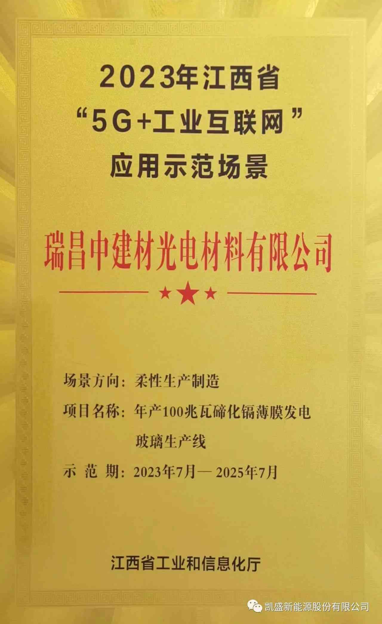 Recently, the application scenario of the "100 MW cadmium telluride thin film power generation glass production line" project declared by Ruichang China Building Materials Optoelectronic Materials Co., Ltd. was successfully selected into the list of "5G Industrial Internet" application demonstration projects in 2023 by Jiangxi Provincial Department of Industry and Information Technology, becoming one of the 42 enterprises selected this time in Jiangxi Province.