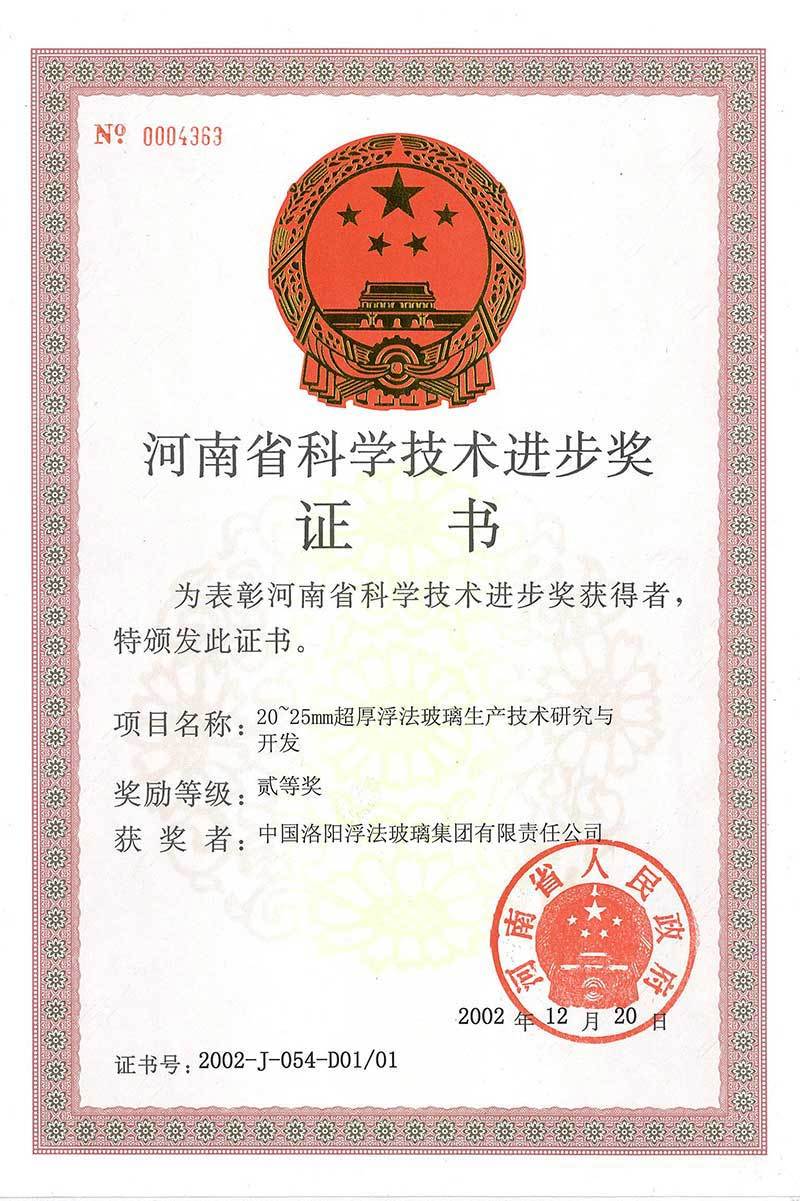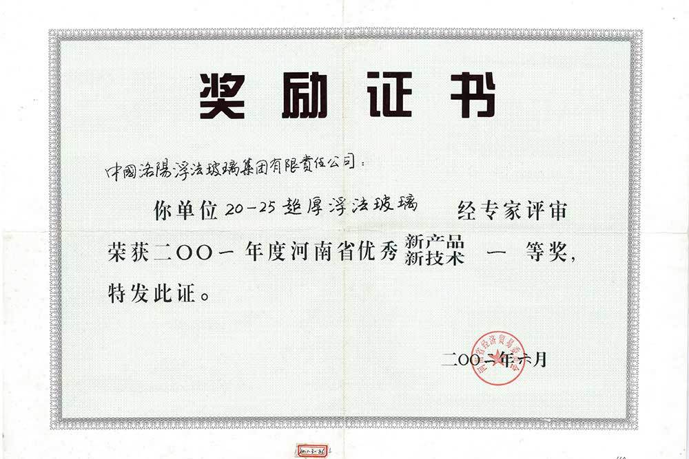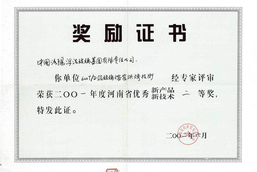 Second Prize of Excellent New Products and New Technologies in Henan Province in 2001