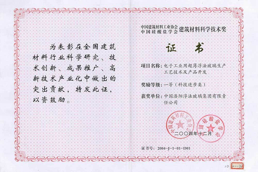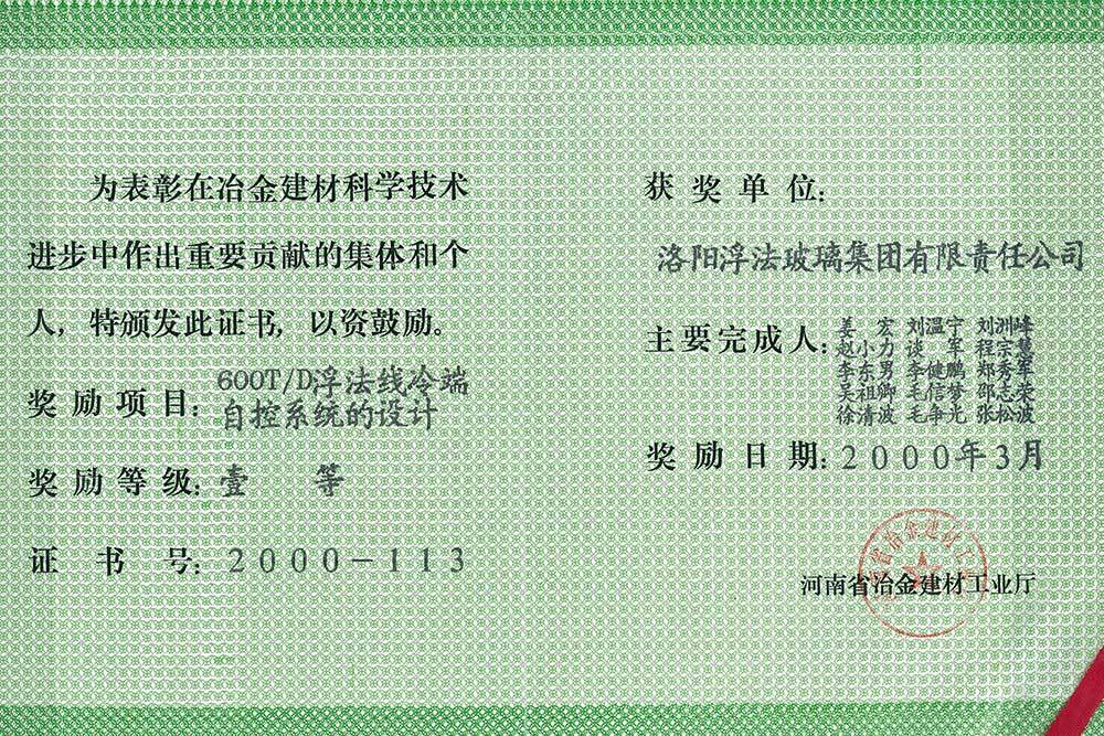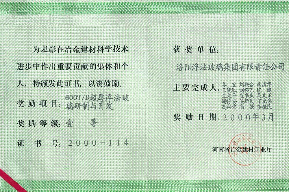 First Prize of Science and Technology Progress in Metallurgical Building Materials of Henan Province in 2000